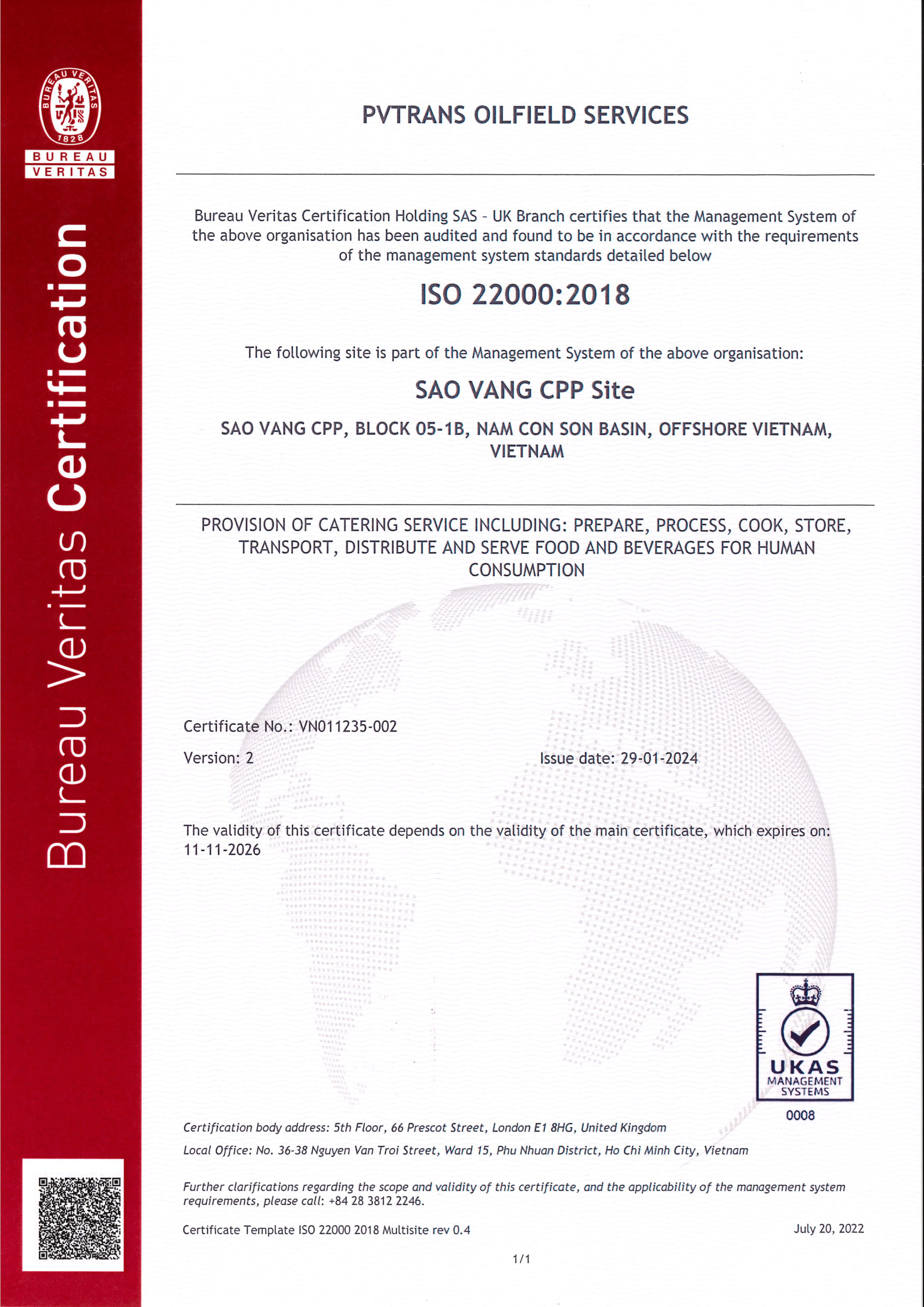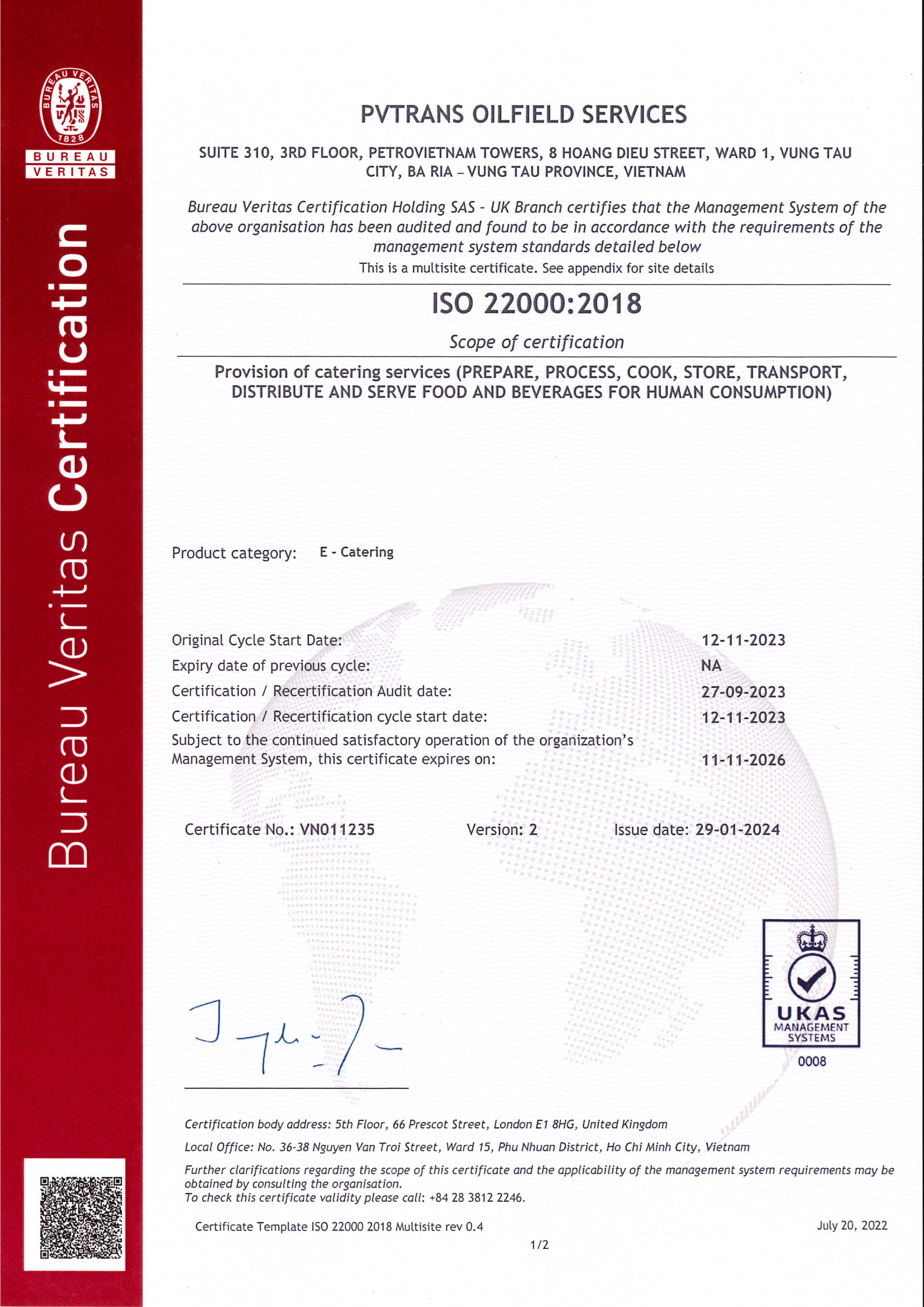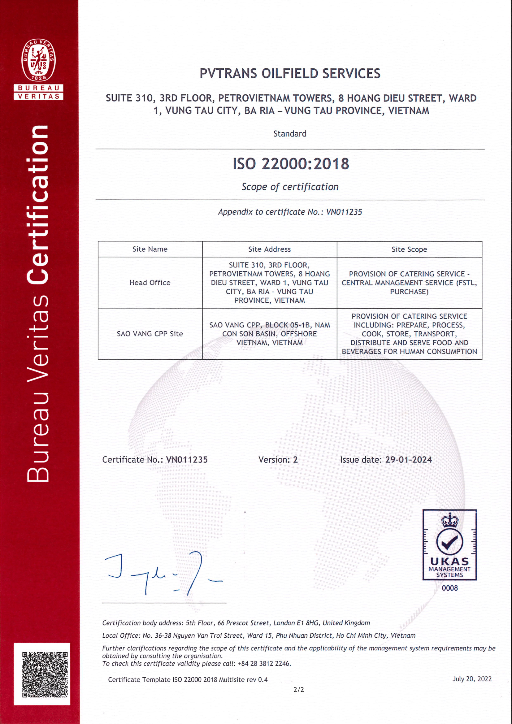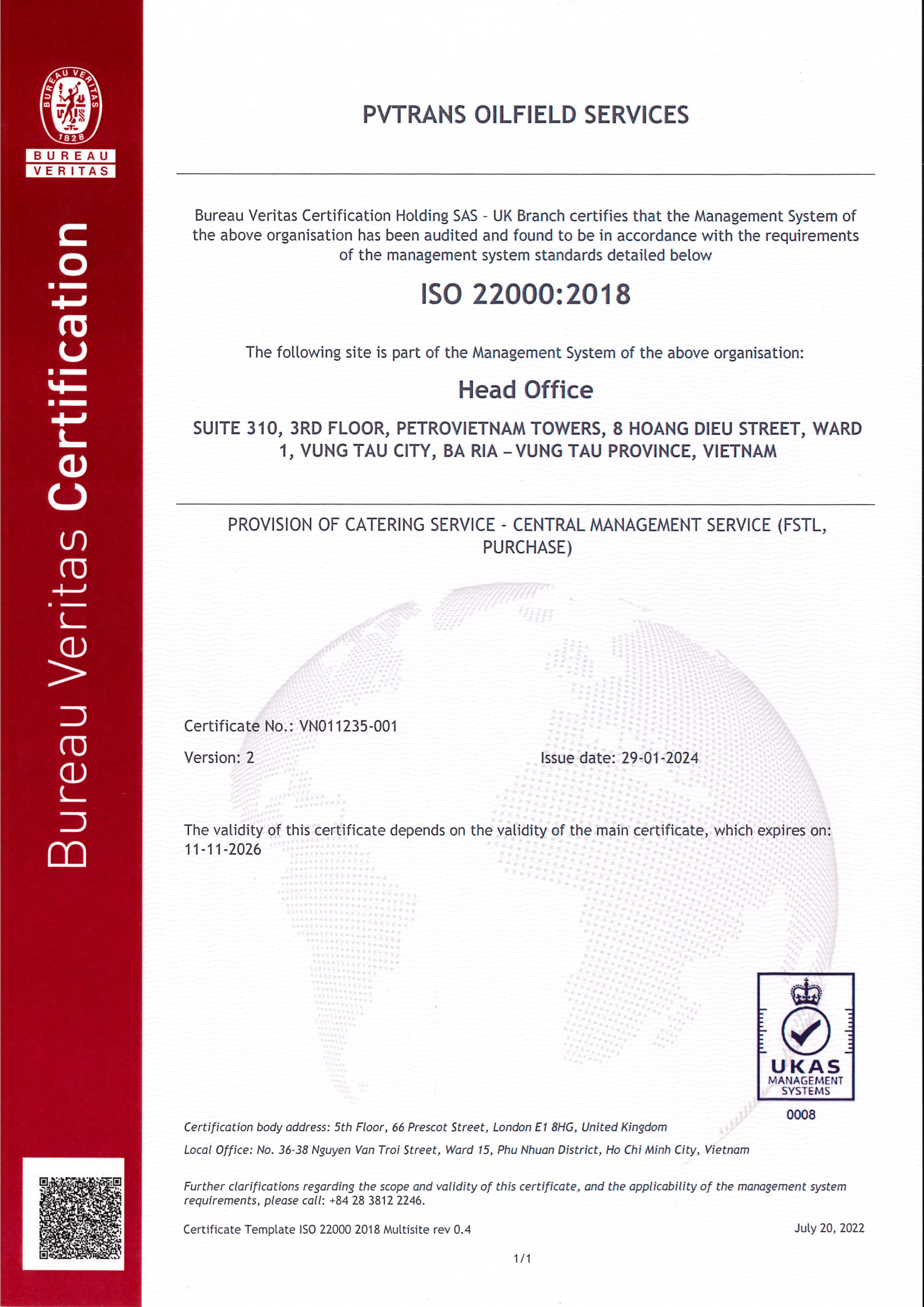 Since its establishment, PVTrans OFS has built QHSE standards according to international standards and applied the management system to the company's business activities. This is the most important purpose for the Company to fulfill its mission of providing high quality services at competitive prices. With the commitment from the Board of Directors, the QHSE management system built according to international standards has been successfully applied at PVTrans OFS and achieved the following international certificates on system management: